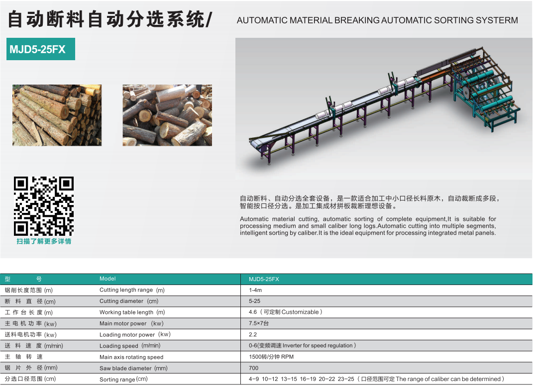 自動多段斷料成等長原木。自動流向,并按設(shè)定的口徑等級分選拔料到指定的生產(chǎn)工位。斷料、分選、送料全程自動化完成。安全、高效、省工時(shí)??趶酱笮》诌x準(zhǔn)確,保證高出材率。大大降低工人工資,而產(chǎn)較高的利潤。